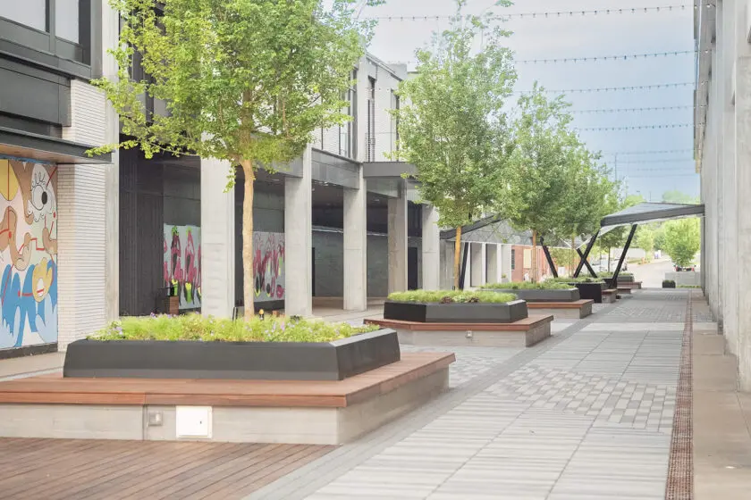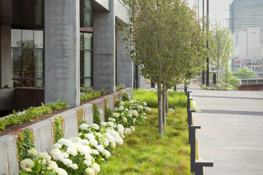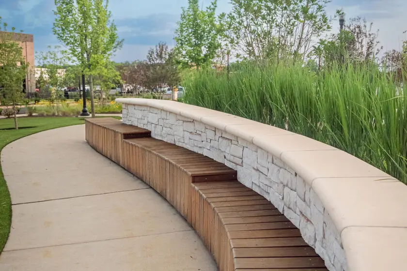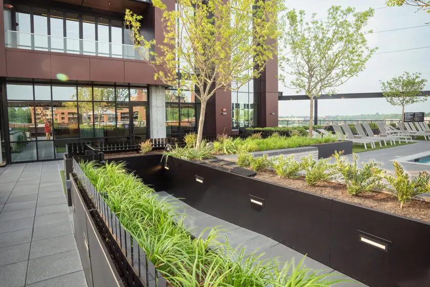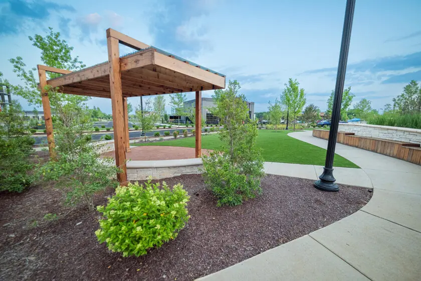 • Landscape installation using durable materials suited for commercial environments